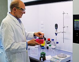 Plasmatreat Surface Solution is your partner for the development, production, quality control and distribution of highly specialized chemicals tailored to the innovative technologies of Plasmatreat GmbH. As an expert laboratory, we ensure smooth and safe operations — from the formulation of precise precursors, test inks, and AntiCorr® test fluids to secure filling and shipping. Our priority is to deliver the highest standards of quality and safety, fully aligned with your production needs.